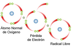 Nuestro cuerpo, constantemente está recibiendo del medio ambiente elementos agresivos como la radiación solar, la contaminación ambiental, el smog de los carros, el consumo de comida chatarra y bebidas azucaradas o carbonatadas, estrés, entre otros factores, que diariamente deterioran nuestras células al inestabilizar sus electrones, es decir, que si los átomos regularmente deben estar apareados en su número de eletrones, pierden uno y buscan compensarse al quitarle un electrón al átomo vecino, y éste a su vez se lo quita al otro vecino, y así sucesivamente se genera una una reacción en cadena, lo cual se llama Radical Libre.
